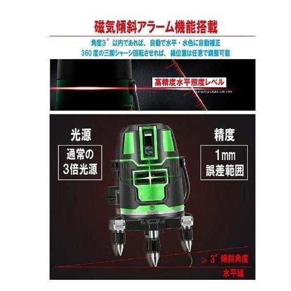 5ライン6点 グリーンレーザー墨出し器/三脚/水平器/墨出器/墨出し機/測定器/水準器/墨だし器/自動補正機能/ 高精度/高輝度