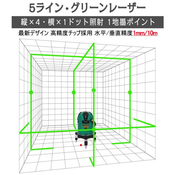 SOZOKI 5ライン電子整準グリーンレーザー墨出し器 SL-65GPE 高輝度 4方向大矩ライン照射モデル ±1mm/10mの高精度 リモコン付き リチウム電池×2本 斜線機能