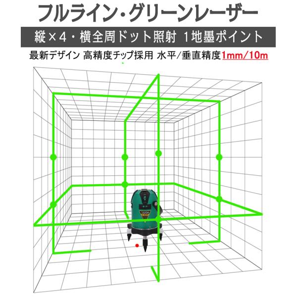 SOZOKI フルライン電子整準グリーンレーザー墨出し器 SL-68GPE 高輝度 ±1mm/10mの高精度 リモコン付き リチウム電池×2本 斜線機能【メーカー1年保証】