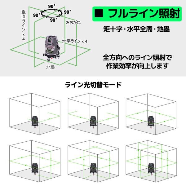 SOZOKI フルライン 電子整準 グリーン レーザー墨出し器 SLH-798GE リモコン遠隔操作 充電式 3電源方式 輝度調整可能 フルライン照射モデル レーザーレベル