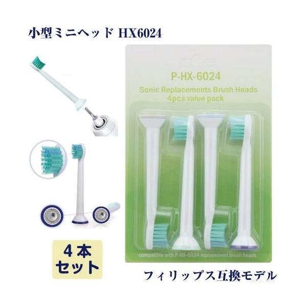 小型ヘッド HX6024 互換 ソニックケアー 4本 フィリップス 電動歯ブラシ HX-6024 Philips Sonicare
