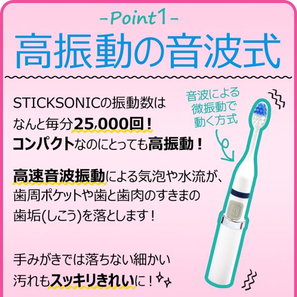 高振動 軽量 電動歯ブラシ 電動 歯ブラシ 携帯 コンパクト 音波歯ブラシ 音波式 振動歯ブラシ スティックソニック 336006