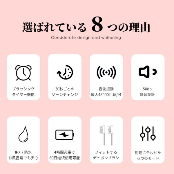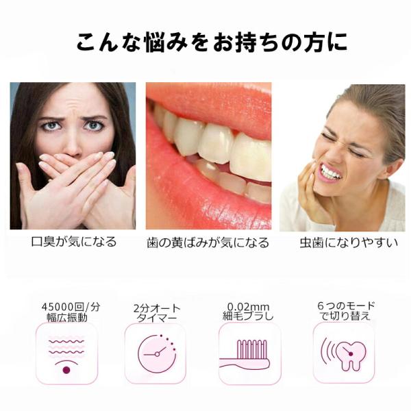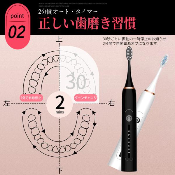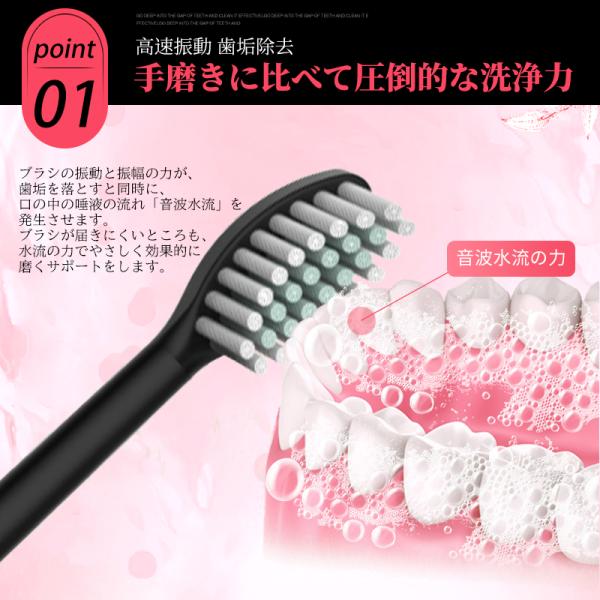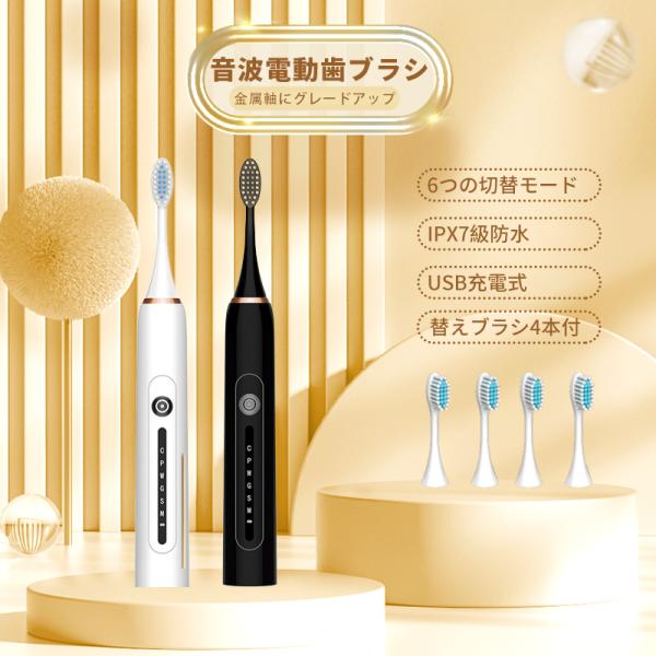 音波電動歯ブラシ 電動歯ブラシ 携帯 歯ブラシ ハブラシ 充電式 IPX7防水 ホワイトニング 2分オートタイマー機能搭載 USB充電