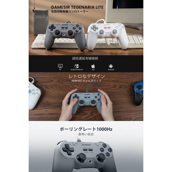 GameSir Tegenaria Lite Switch / Switch2 / iOS / Android / WindowsPC対応 有線コントローラー Gray