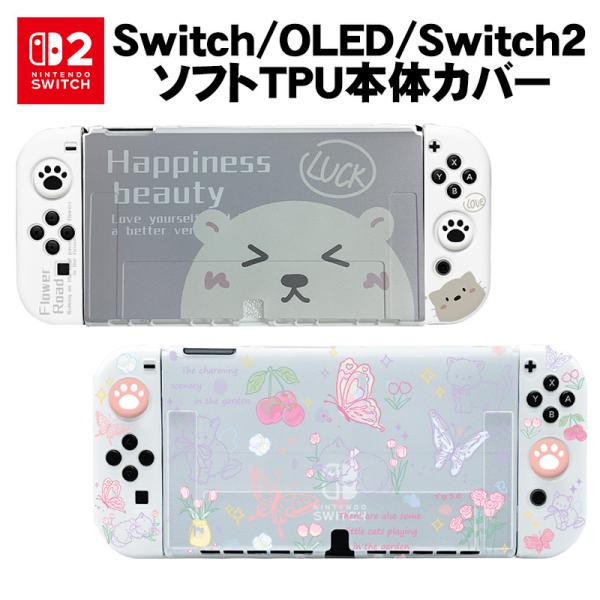 Nintendo Switch 有機EL Switch2 TPUカバー スティックカバー ガラスフィルム かわいい 本体カバー 耐衝撃 傷 汚れ防止 保護