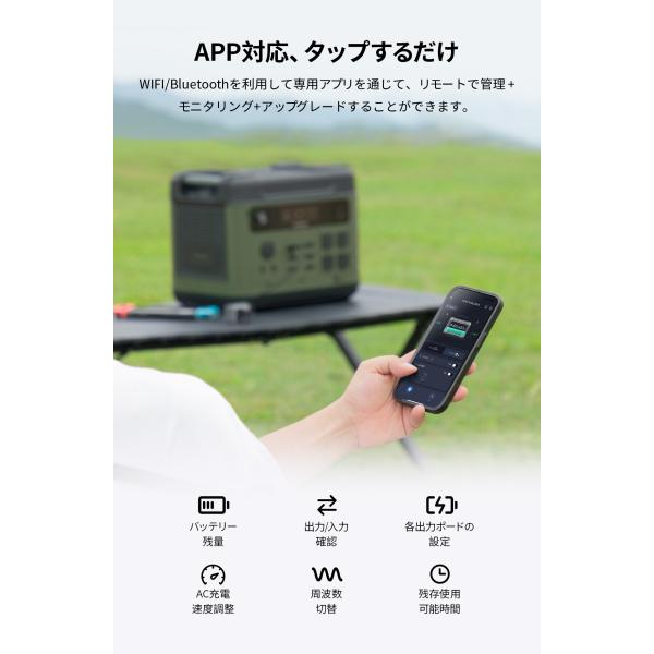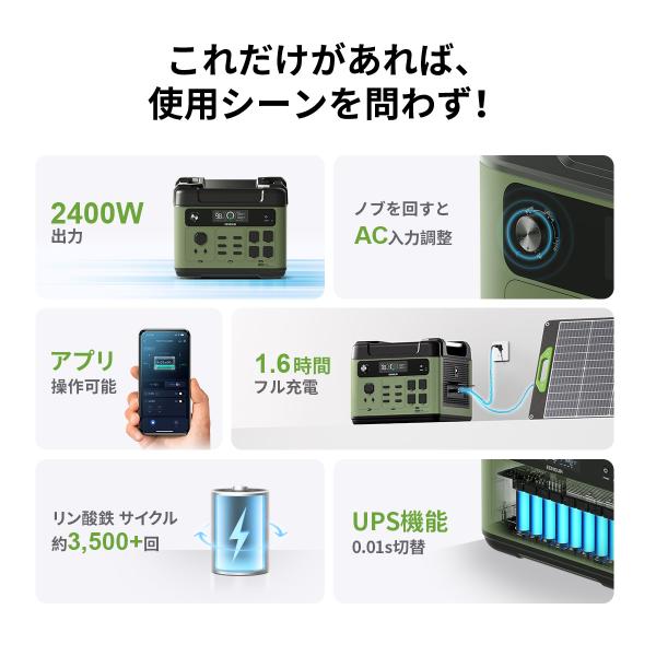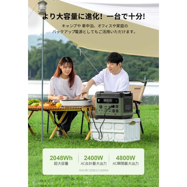 2025年進化版 4800W ポータブル電源 2048Wh 2400W出力 AC入力調整可能 APP管理 1.6H満充電 UPS P2001PLUS 防災 EENOUR