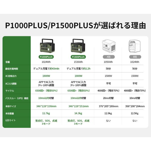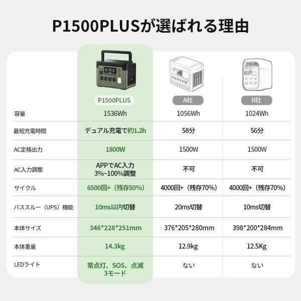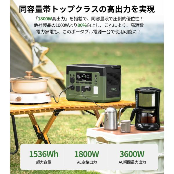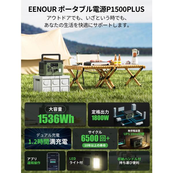 EENOUR 1536Wh/1800W 最速43分フル充電 APP対応 ポータブル電源 バッテリー 充電器 リン酸鉄リ UPS機能 1Hフル充電 P1500PLUS 爆買