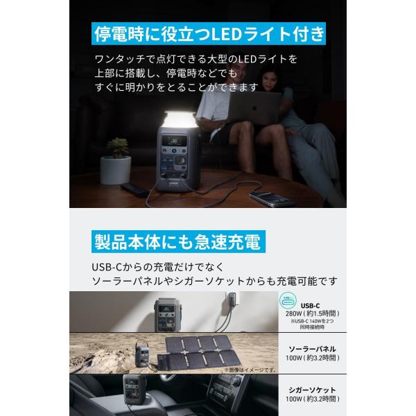 Anker Solix C300 DC Portable Power Station ポータブル電源 288Wh 小型軽量2.8Kg 1.5時間満充電 合計最大出力300W USB-C/USB-A/DC 計7ポート ブラック