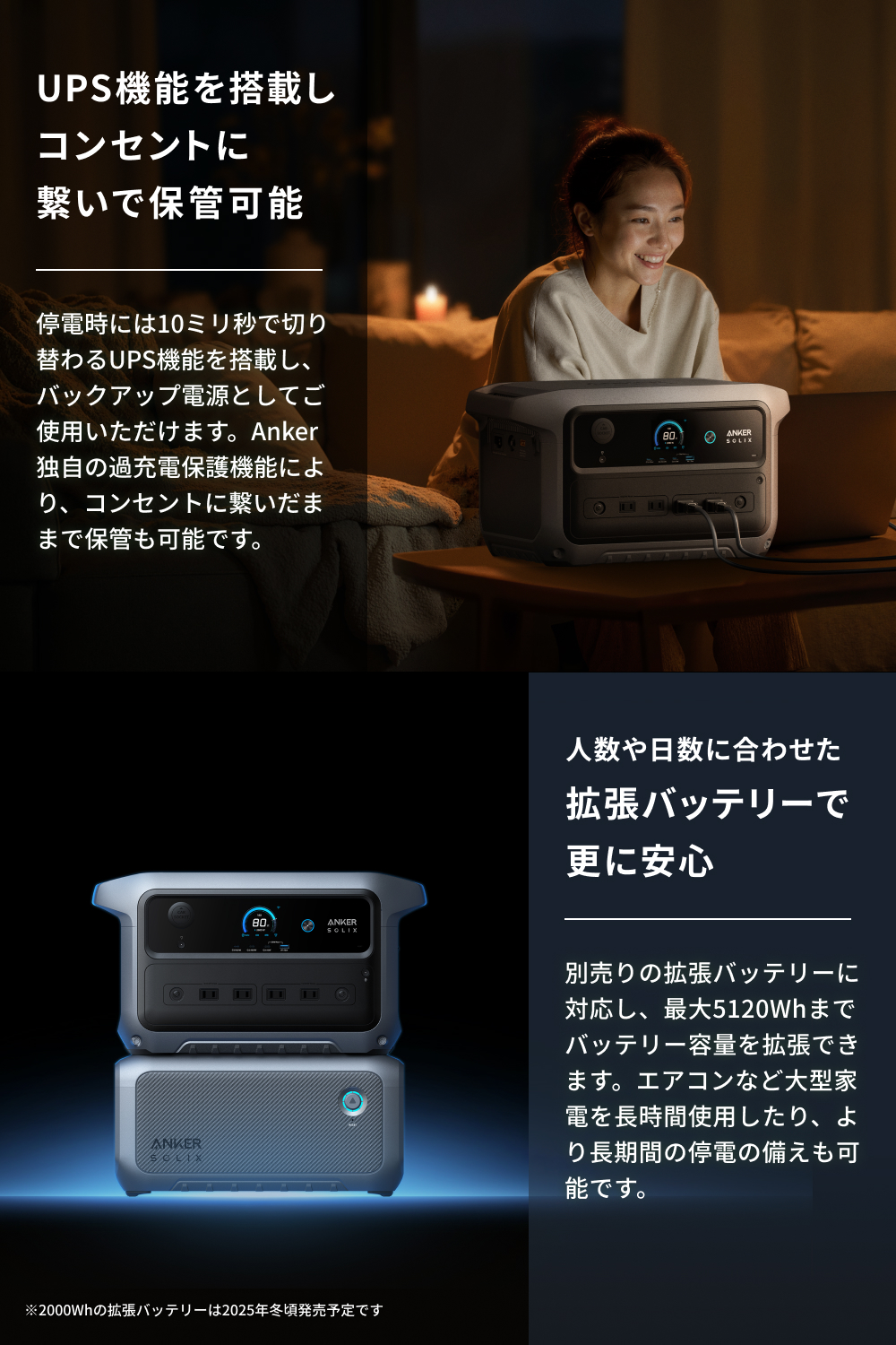 Anker Solix C2000 Gen 2 Portable Power Station ダークグレー 2048Wh 世界最小クラスの大容量ポータブル電源 世界最速99分で満充電