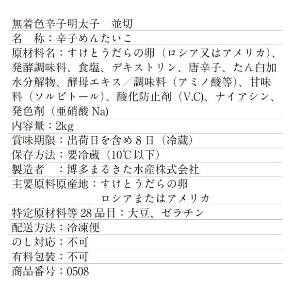 明太子 無着色辛子明太子 並切 2kg 業務用 訳あり 辛子明太子 博多明太子 九州 福岡 博多 グルメ おつまみ プレゼント 手土産 送料無料
