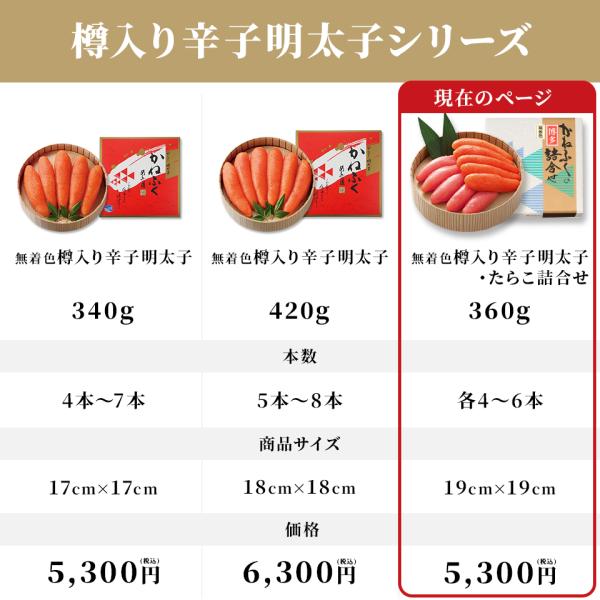 明太子 かねふく 樽入り辛子明太子・たらこ詰め合わせ 360g 無着色 一本物 送料無料 明太子 たらこ 博多詰合せ 博多直送 kanefuku 公式ストア
