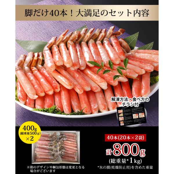 母の日 ギフト お刺身OK 生ズワイ蟹ポーション 800g 総重量1kg 40本 送料無料 ずわいがに ズワイガニ【★母の日用でも配達日指定がない場合は最短発送★】