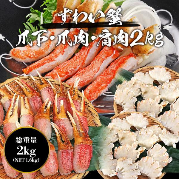 蟹 訳あり 格安 2kg ズワイガニ 部位食べ比べ カニ鍋 爪肉 爪下 肩肉 総重量2kg NET1.6kg ずわいがに ポーション カット 爆買