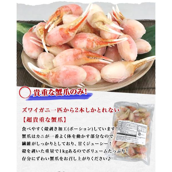 かに カニ 蟹 ズワイガニ ボイル カニ爪 ポーション 1kg 蟹爪 剥き身 ずわいがに 食品 海鮮 ギフト ポイント利用 爆買