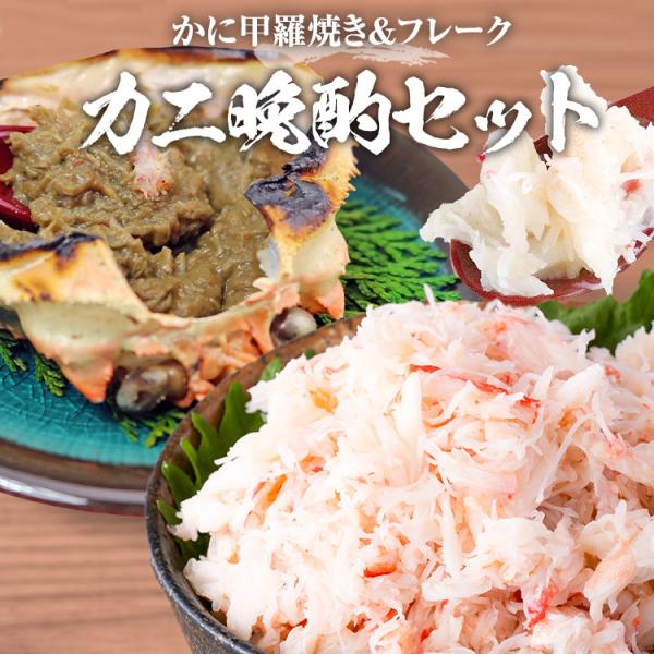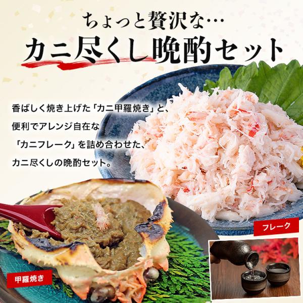 カニ 晩酌セット 蟹味噌 甲羅盛 と 本ズワイガニ ミックスフレーク 甲羅焼き ほぐし身