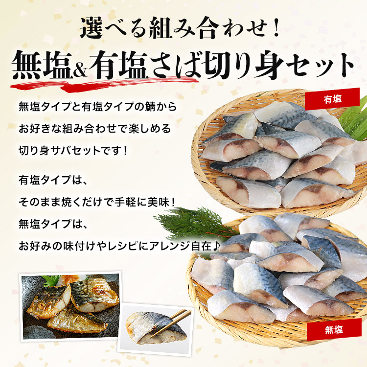さば 骨取り 選べる組み合わせ 無塩 有塩 切り身セット 1.2kg(30g×20切×2) 冷凍 骨なし 鯖 サバ