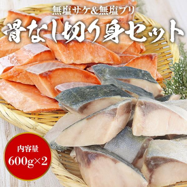 骨取り 無塩さけ 無塩ぶり 切り身セット 600g(30g×20切)×2 冷凍 骨なし 鮭 サケ ブリ 鰤 一口サイズ