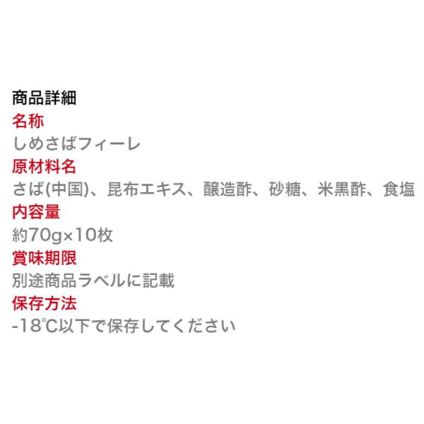 寿司ネタ しめさばフィレ 約70g×10枚 骨取り すしねた 生食用 〆鯖 サバ 酢〆 刺身用 棒寿司 押し寿司 手巻き寿司 爆買