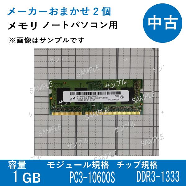 【中古メモリ ノートパソコン用】PC3-10600S/DDR3-1333 1GB 2個セット