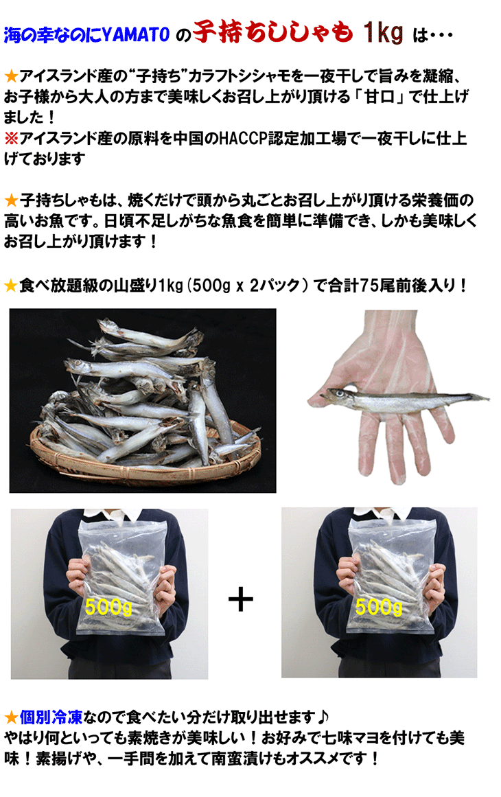 子持ち シシャモ 一夜干し 山盛り1kg(500g×2袋) アイスランド産 ししゃも カペリン おつまみ