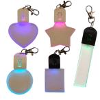 光る アクリルライト 【充電式】 キーホルダー 7色チェンジ リフレクター 反射バンド レインボー ネームタグ チャーム 首輪 リード 丸 円 星 ハート