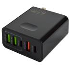 3.1A 65W 急速充電器 5ポート PD25W GaN タイプC type-c USB QC3.0 5口 コンセント スマホ iphone 同時 充電 黒 ブラック