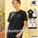 チャンピオン Tシャツ レディース ブランド Champion CWD323 コットン100 綿100 黒 白 バックプリント付き ハート