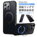 iPhoneケース 360°ゼンマイ式回転リングスタンド MagSafe対応 耐衝撃 カーボン調iPhone17 air pro Max iPhone16 15 14 ブラック シルバー