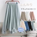 フレアスカート ウエストゴム 膝丈 ロングスカート 秋 春 無地 30代 40代 50代 おしゃれ