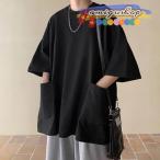 メンズ Tシャツ 半袖 オーバーサイズ ポケット付き シンプル 無地 ビッグシルエット 半袖カットソー ゆったり 七分袖 大きいサイズ おしゃれ