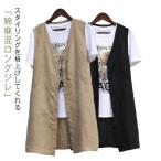 Vネック リネン ロングジレ 前開き ジレ レディース 春夏 綿麻風 サマー ジレ ロング丈 薄手 夏 ボタン 綿麻混 ワ