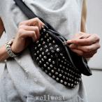 レディースバッグボディバッグスタッズ黒サブバッグ目玉