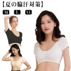 汗ジミ対策 ストレッチ 大汗さんもおまかせ ショート丈 半袖 汗脇 大型パッドで パッド 脇さらさら カップ付き 脇汗 わきサラ 汗取りインナー 汗取