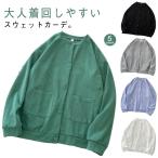 スエット 秋 長袖 レディース トップス 丸首 スウェットカーディガン ノーカラー ビッグシルエット 薄手 クルーネック ドロップショルダー パーカー