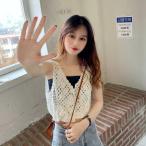 クロシェ編み ニット ベスト フロントボタン 前開き ショート丈 レディース ベスト