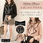ブラウス レディース ボウタイ 長袖 フリル ガーリー リボン ツートンカラー バイカラー