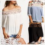 オフショルダー カットソー オフショル トップス 肩だし レース レディース