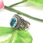 アウトレット アジアン雑貨 エスニック シルバー アクセサリー リング 指輪 【6号】 ジルコニア・スカイブルー