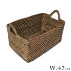 ラタンの持ち手付きバスケット 長方形 Mサイズ [45x29x21cm] アジアン雑貨 バリ雑貨 おしゃれなランドリー収納バスケット