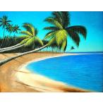 M.Santo 『椰子の木とSeaside』 バリアート 絵画 L 横 [額横約63cmx縦53.5cm] 風景画 おしゃれな 海の絵 インテリア エスニック アジアン雑貨 バリ
