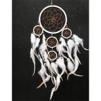 ドリームキャッチャー ホワイト ブラウンネット 黒ビース [全長約50cm・最大円直径約11cm] 魔除け お守り おしゃれな エスニック アジアン 雑貨 ★送料無料★