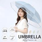ビニール傘 長傘 カジュアルビニール 60cm 8本骨 グラスファイバー ジャンプ式 ワンタッチ スナップボタン留め 丸型露先 丸い石突 透明感 おしゃれ レディース