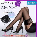 ニーハイストッキング ガーターストッキング シリコン ストッパー付き ガーターフリー 花柄レース 膝上 ストッキング 黒 肌色 白 赤 紫