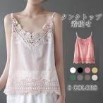 タンクトップ レディース 綿麻 レース ノースリーブ 無地 トップス ルームウェア アンダーウェア 透かし彫り キャミソール 肌着 上品 着回し 夏服