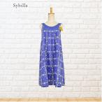 母の日 エプロン シビラ おしゃれ クロスかぶり型(ブルー)刺繍花格子