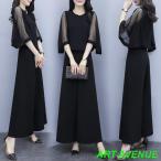 [] かっこいいパンツドレス 袖あり 黒 セパレート パーティードレス 結婚式 お呼ばれ ドレス 30代 40代 50代 黒ドレス セットアップ 大きいサイズ 3L 4L