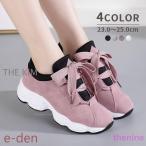 スニーカー 靴 シューズ レディース 女性 婦人 厚底 リボン レースアップ ボリュームソール かわいい おしゃれ カジュアル