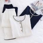 ガーゼパジャマ レディース ダブルガーゼ 綿100 柔らかい ふわふわ 春 秋 冬 夏 ギフト ルームウェア ナイティ ナイトウェア M L XL女性 前開き 長…