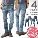 デニムパンツ メンズ スキニーデニム ダメージ デニム ストレッチ ウォッシュ加工 ロングパンツ スキニーパンツ カジュアル