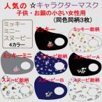 キャラクターマスク キッズ〜お顔の小さい女性用(約W12.5x14.0cm)伸縮性 4柄4色同柄同カラー3枚)スヌーピー、ミッキー、ミニ ワンポイント柄、総柄